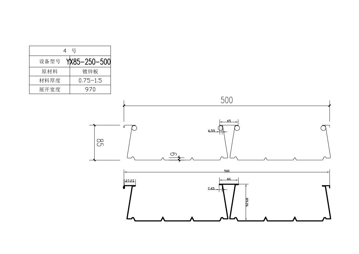YX85-250-500閉口樓承板,也叫壓型鋼板、鋼承板、鋼樓承板,是采用鍍鋅鋼板經輥壓冷彎成型,其截面成V型、U型、梯形或類似這幾種形狀的波形,主要用作性模板,也可被選為其他用途。